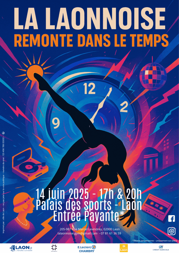 Dans ce projet, j’ai participé à l’organisation d’un événement intitulé La Laonnoise remonte dans le temps. J’ai pris en charge la communication visuelle globale : création des supports print (affiches, flyers, banderoles) et des contenus pour les réseaux sociaux. J’ai également contribué à la gestion de l’événement : coordination des partenaires, mise en place d’une tombola, et suivi de l’organisation logistique. Pour marquer l’occasion, des justaucorps sur-mesure aux couleurs de l’événement ont été créés. Ce projet m’a permis de travailler à la fois sur l’aspect créatif, organisationnel et relationnel de la communication événementielle.