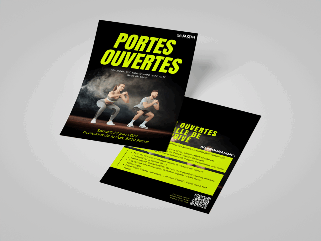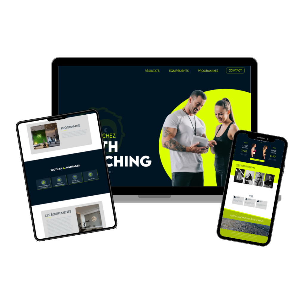 Salle de coaching sportif privé, Sloth Coaching est un projet fictif réalisé dans le cadre d’un travail d’école. Il propose un concept d’accompagnement personnalisé dans un cadre intimiste, pensé pour favoriser la progression, la confiance et le bien-être.
